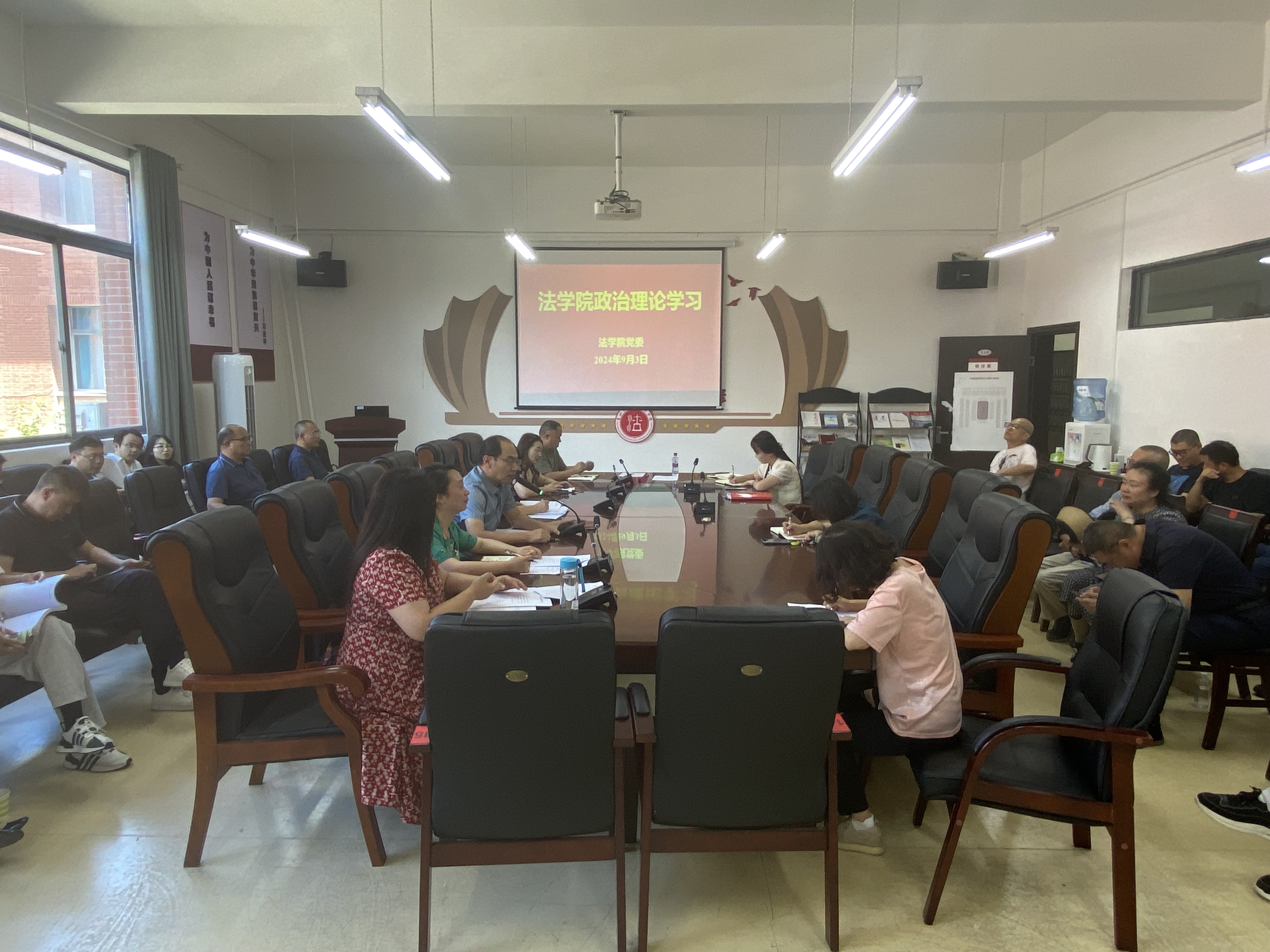 (法学院 莫丹洵 报道|摄影 )9月3日下午,法学院党委组织召开2024年度第七次教职工政治理论集体学习党的二十届三中全会精神。院领导及全院教职工出席会议,院党委书记邵新顺主持会议。