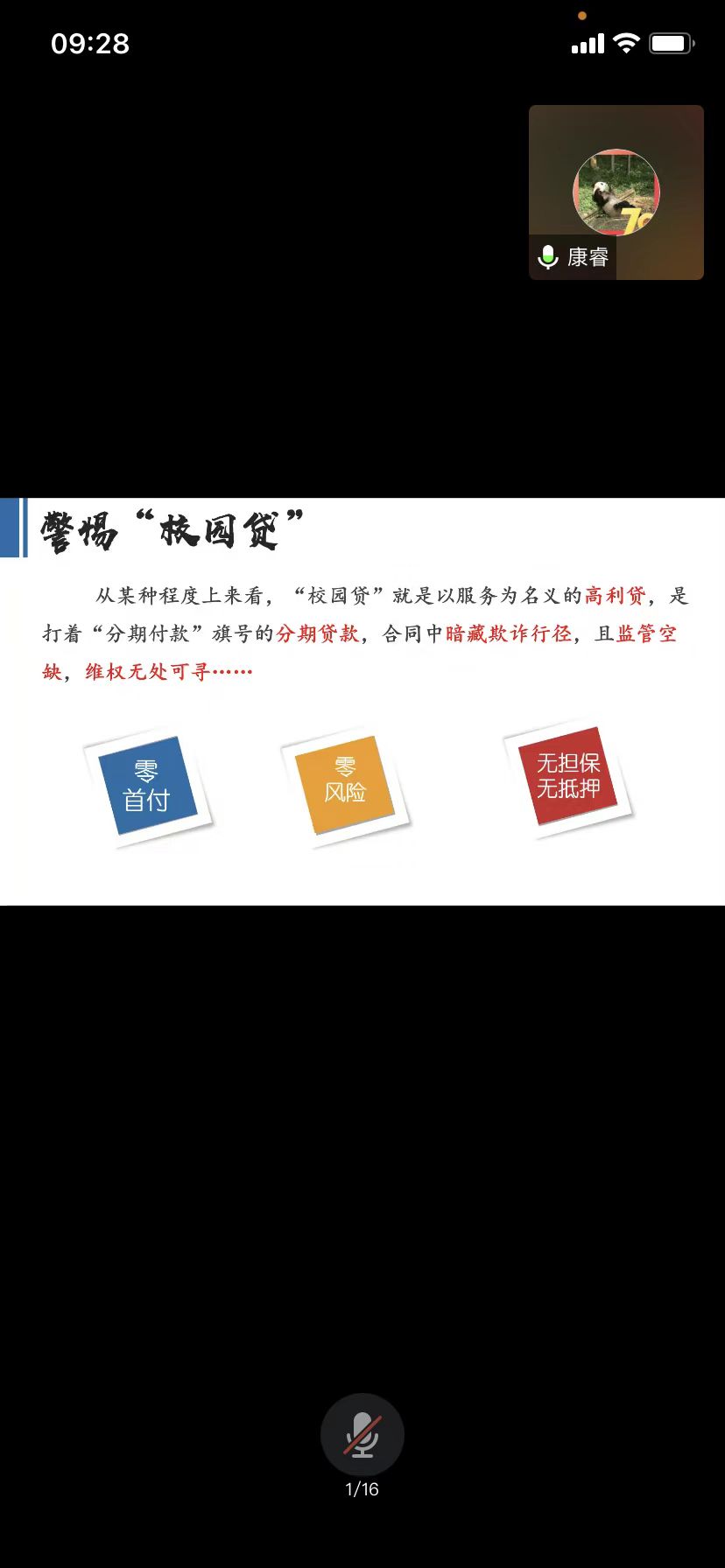 随后,贵州银行总行机关第九党支部党员、贵州财经大学07届国贸专业校友康睿同志面向法学院所有党员同志开展金融知识宣传和教育。宣讲过程中他向同学们着重介绍了如何远离“校园贷”的侵害、如何识别和规避疫情防控期间金融诈骗行为、如何有效保护个人信息等相关金融知识,以此提升在校大学生风险防范意识。宣讲结束后结合自身实际案例,与参加本次活动的同学们开展了“学长有话说”校友工作学习经验分享,以个人经历与同学们交流了如何过好大学生活、如何做好走上工作岗位、为社会贡献青春力量等内容,同时与同学们进行连麦交流,对同学们提出的问题认真解答。活动最后,组织所有参加本次活动的同学们参加了党史知识竞猜活动。活动开展过程中,法学院学生党支部的党员同志积极参与互动,营造了良好的活动氛围。