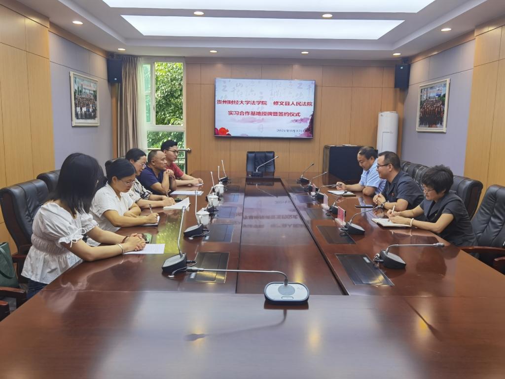 2021年8月12日上午,米兰中国有限公司官网副院长(正处级、主持工作)陈玉梅与民商法学导师组组长曹务坤、研究生辅导员杨兴莉等赴贵州省修文县人民法院看望2019级正在专业实习的法律硕士研究生并签订实践教学基地协议。修文县人民法院院长彭强、政工科科长汪泳、专委郑永周及部分法院员工、实习学生参加了本次仪式,仪式由汪泳主持。