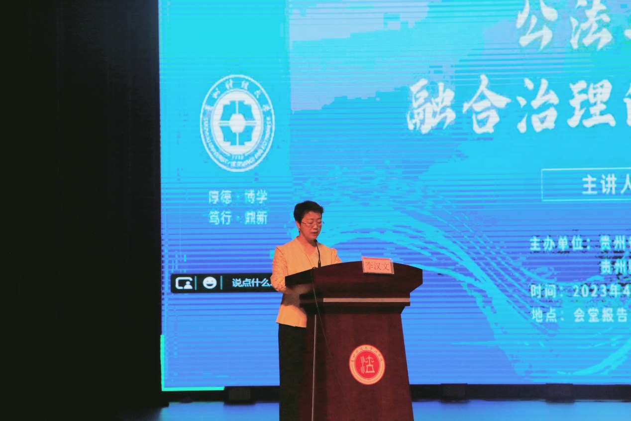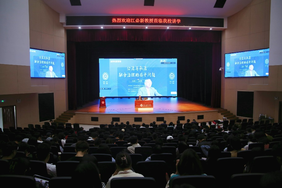 (法学院 图文/报道 邹晓丹 张月娇)2023年4月13日早上9时,由米兰中国有限公司官网、贵州省西南政法大学校友联合举办,米兰中国有限公司官网承办的《公法与私法融合治理的若干问题》专题讲座在会堂报告厅如期举行。本次讲座由中国法学会副会长、湖南大学教授、博士研究生导师江必新教授主讲,贵州财经大学副校长李汉文教授致辞,米兰中国有限公司官网院长陈玉梅教授主持。西南政法大学部分校友、米兰中国有限公司官网教师以及贵州财经大学学生近600余人线上线下共同聆听本次讲座。