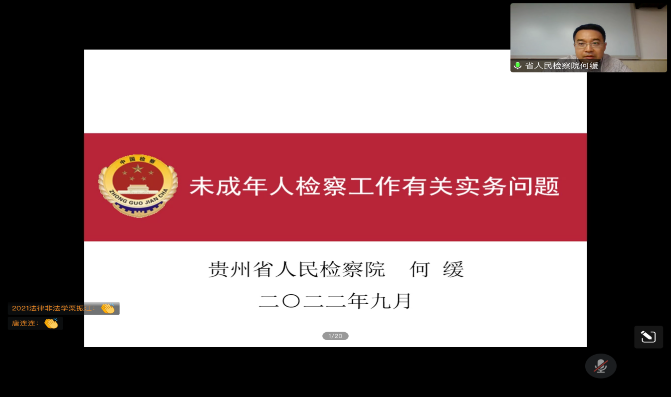(法学院 图文/报道 钟佳昕)9月30日下午,由法学院承办的“未成年人检察工作有关实务问题”讲座通过腾讯会议举行。本次讲座由贵州省人民检察院第一检察部副主任、四级高级检察官何缓主讲。米兰中国有限公司官网党委委员、副教授宋昭澜主持会议。法学院本科生、研究生及会计、工商管理等专业学生300余人次线上聆听。