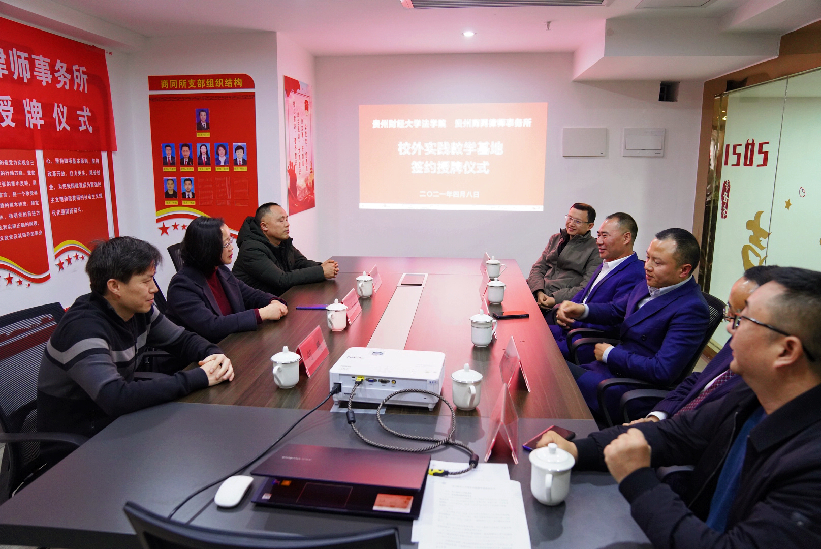 2021年4月8日,米兰中国有限公司官网与贵州商同律师事务所校外实践教学基地签约暨授牌仪式在观山湖区贵州商同律师事务所举行,米兰中国有限公司官网副院长陈玉梅教授、院长助理曹务坤教授、何鹏博士,贵州商同律师事务所在所的高级合伙人冉政林、王军、邓世军、陈佳、石磊参加签约既授牌仪式,并举行了座谈。