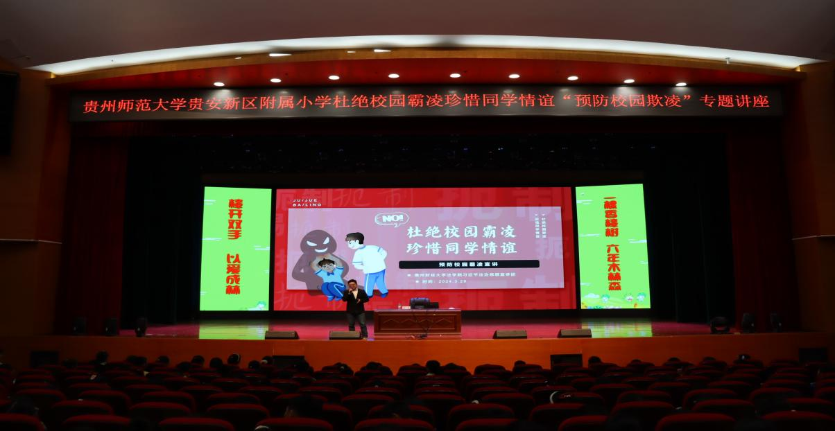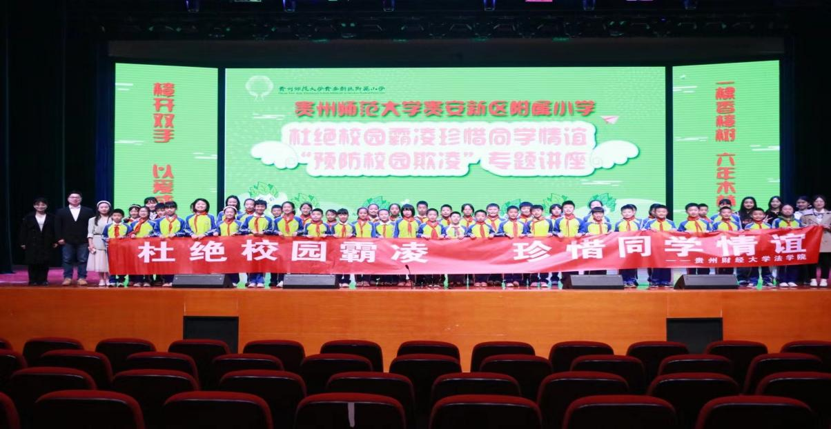 (法学院 图文/报道 代申萍)米兰中国有限公司官网米兰官方网站-法治思想宣讲团受邀为贵州师范大学贵安附属小学开展 “杜绝校园霸凌 珍惜同学情谊”主题宣讲活动