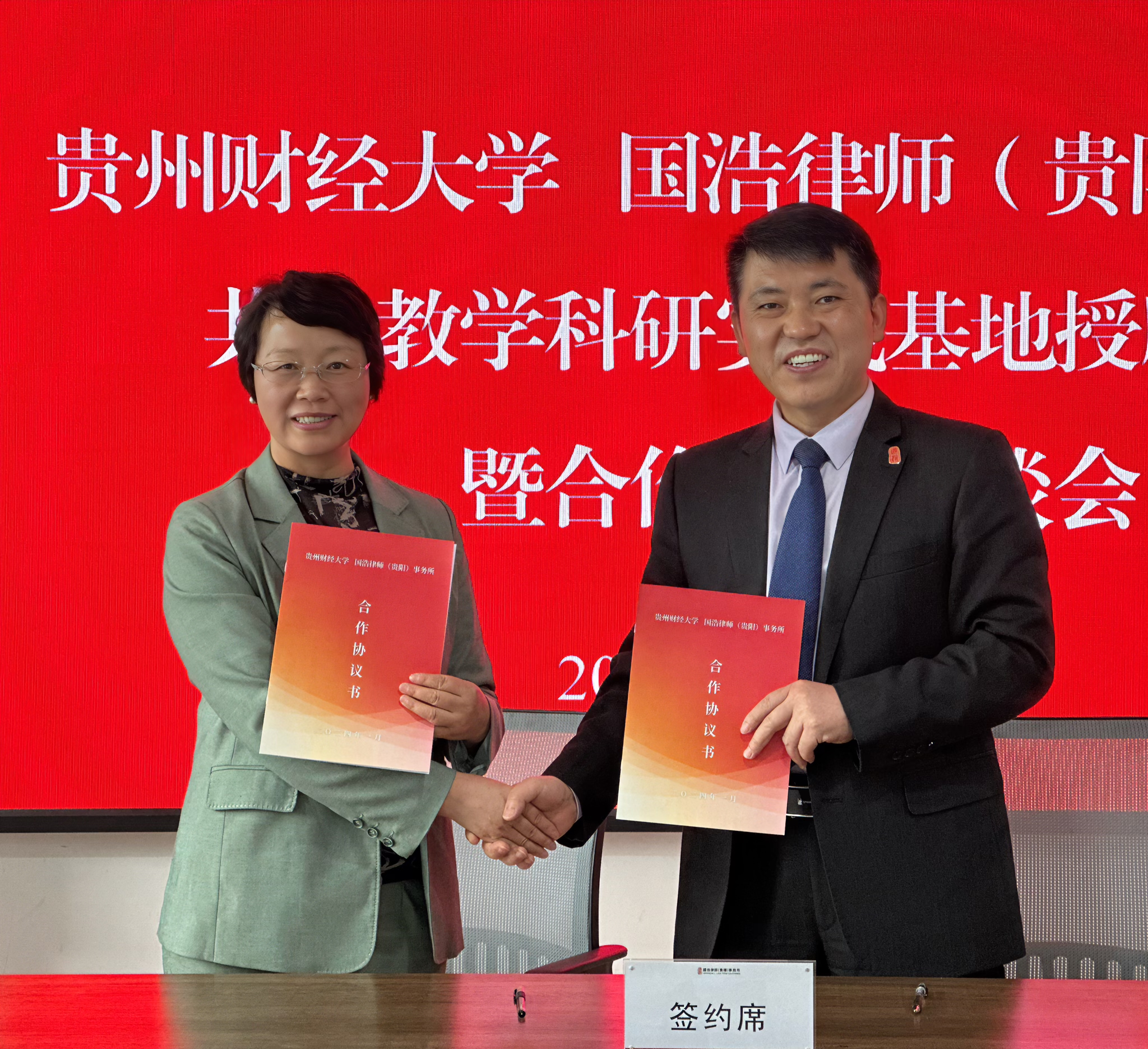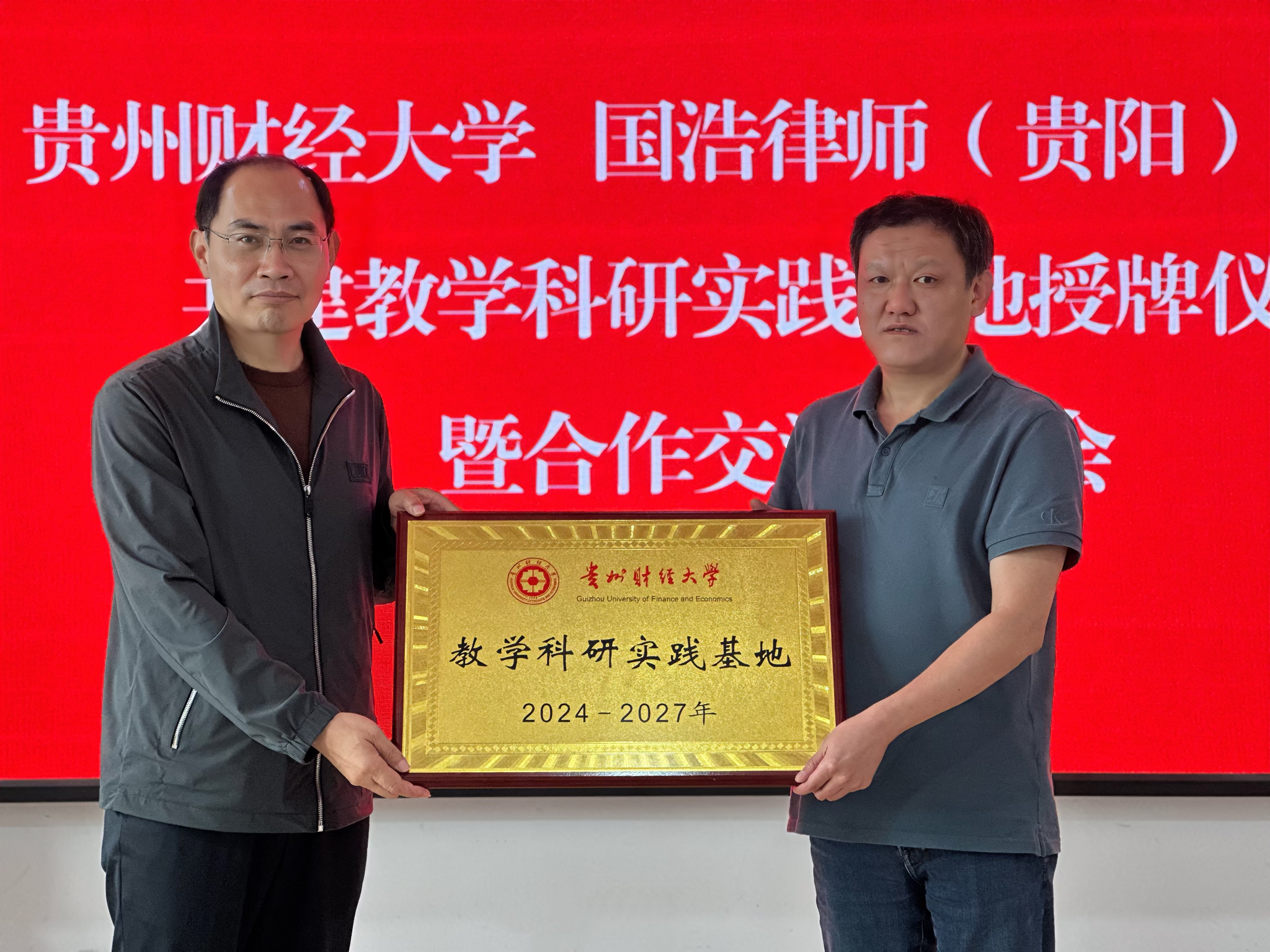 (法学院 王霖 图文/报道)2024年6月8日下午,贵州财经大学特聘教授、贵州省社会科学院原党委书记吴大华;米兰中国有限公司官网党委书记邵新顺,党委副书记、院长陈玉梅一行前往国浩律师(贵阳)事务所(以下简称为“国浩贵阳律所”),举行共建教学科研实践基地授牌仪式暨合作交流座谈会。贵州省律师协会会长、国浩贵阳律所合伙人白敏;国浩贵阳律所主任、管理合伙人郑世红,党支部书记、管理合伙人兰钢等人员出席会议。会议由国浩贵阳律所管理合伙人潘志成主持。双方就党建工作开展、法商融合型人才培养、科研合作创新、实践成果转换等问题进行了深入交流。